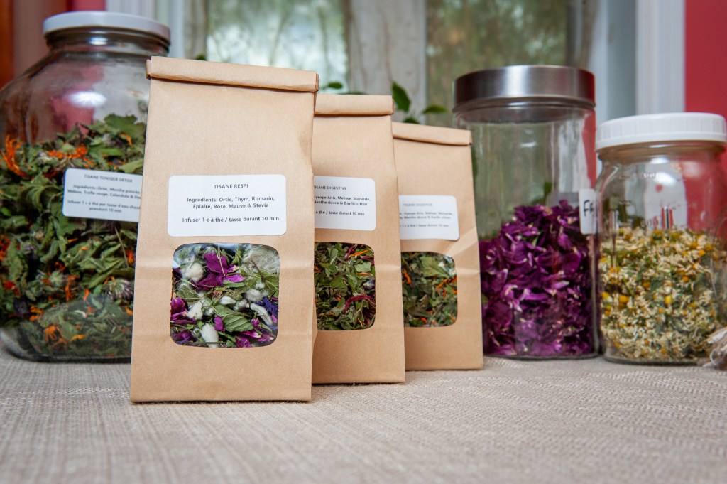 Tisanes artisanales mélanges variés en vrac : 50 gr. 10$