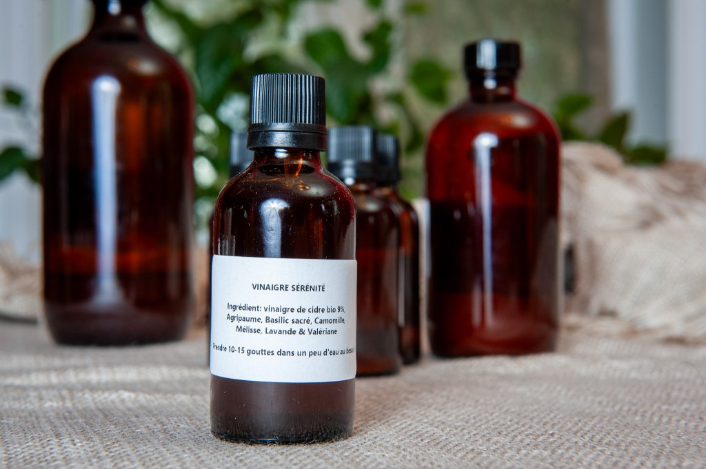 Vinaigres médicinaux variés Synergies populaires (casse-grippe, tonique fortifiant, Sérénité, Anti-inflammatoire…) Ou mélanges personnalisés :